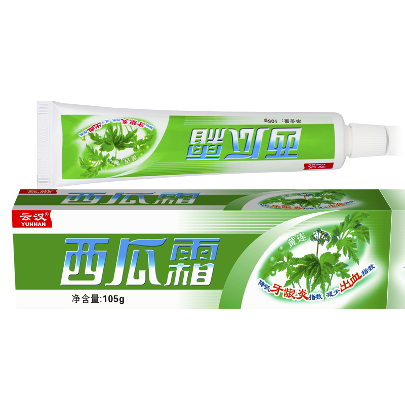 公司技术人员根据《疡医大全》、《本草纲目》、《中药辞海》中记载的有关西瓜霜、黄连、三七等中草药具有清热解毒、消肿止痛等功效,经过两年多的试验研究,成功研制开发出云汉西瓜霜中药牙膏,并经过国家三级甲等口腔专科医院的临床证明,云汉西瓜霜中药牙膏能减少牙龈出血指数,降低牙龈炎指数,减轻牙渍、洁白牙齿,减轻异味、清新口气,保持牙齿健康,与普通的口腔清洁用品相比,云汉牌西瓜霜中药牙膏以其药味浓,健齿好的卓越性能,赢得了广大消费者的普遍认可。