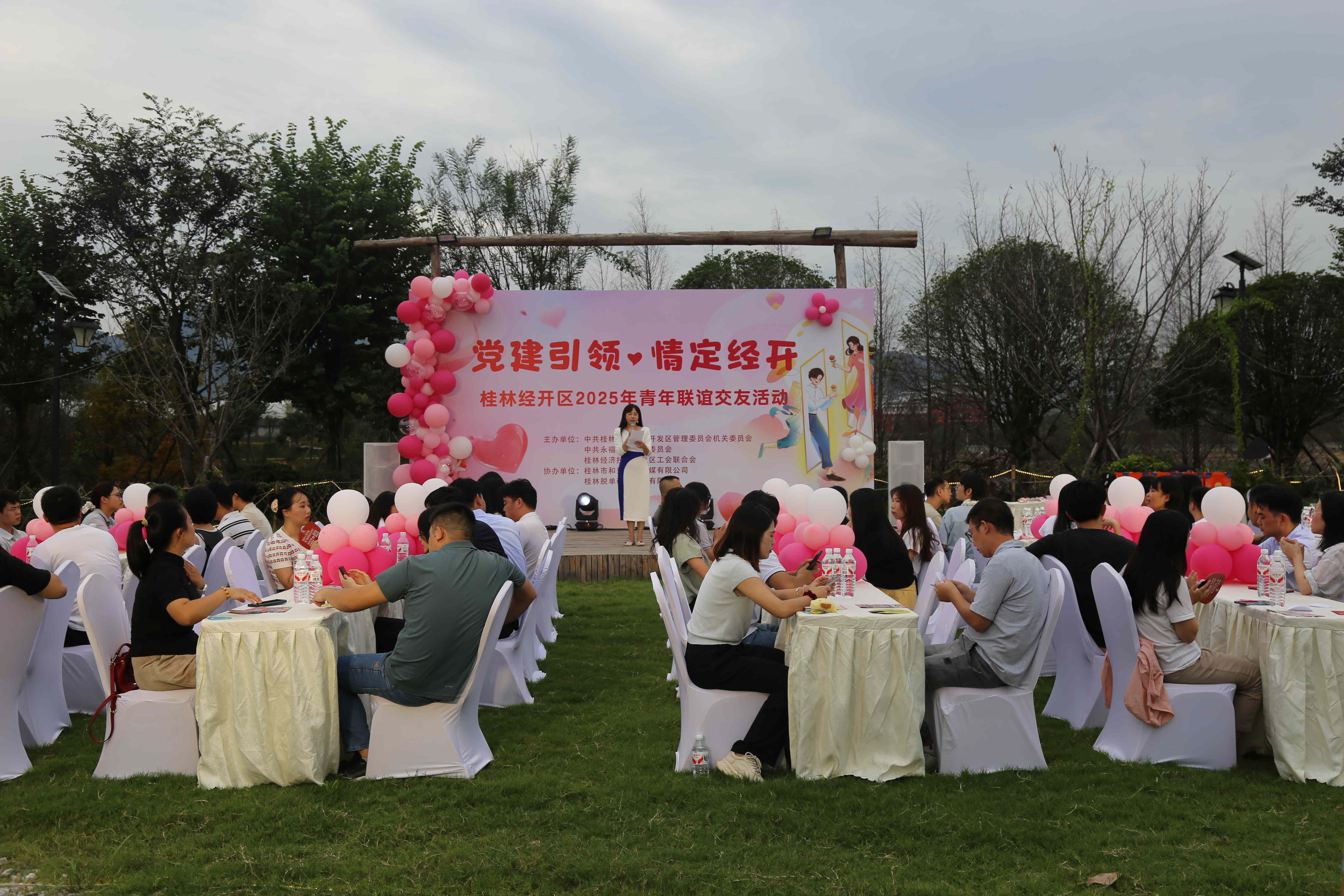 党旗做“月老”,产业当“红娘”。9月29日,一场主题为“党建引领·情定经开”的青年交友联谊活动在桂林经开区露营基地浪漫举行,为园区企业单身青年员工搭建了一座通往幸福的桥梁。本次活动由桂林经开区机关党委、苏桥镇党委、桂林经开区工会联合会主办,共吸引100多名优秀单身青年参与。