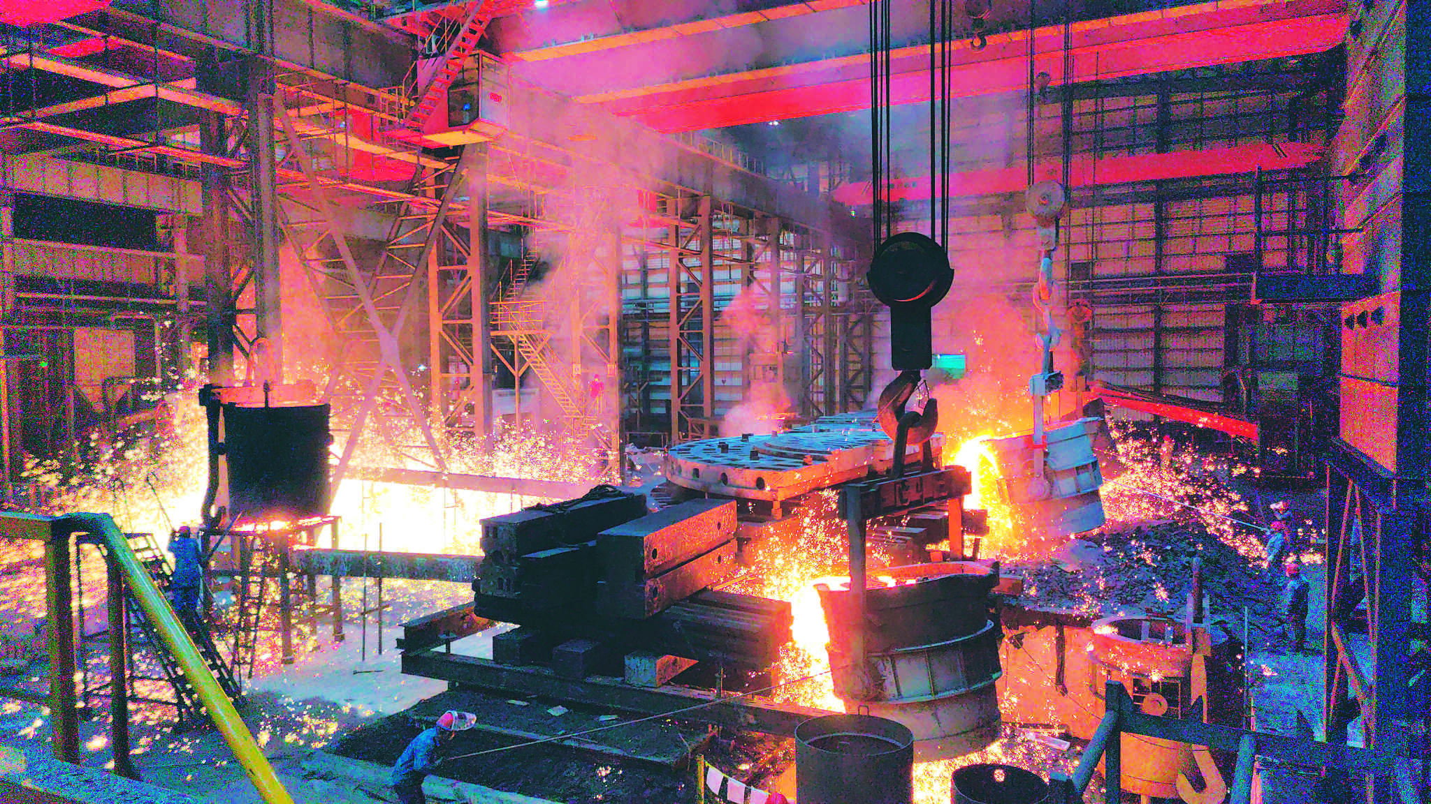 ▲全国最重、最长一体化铸造灰铁横梁在桂林成功浇注。 (桂林鸿程精机公司供图)