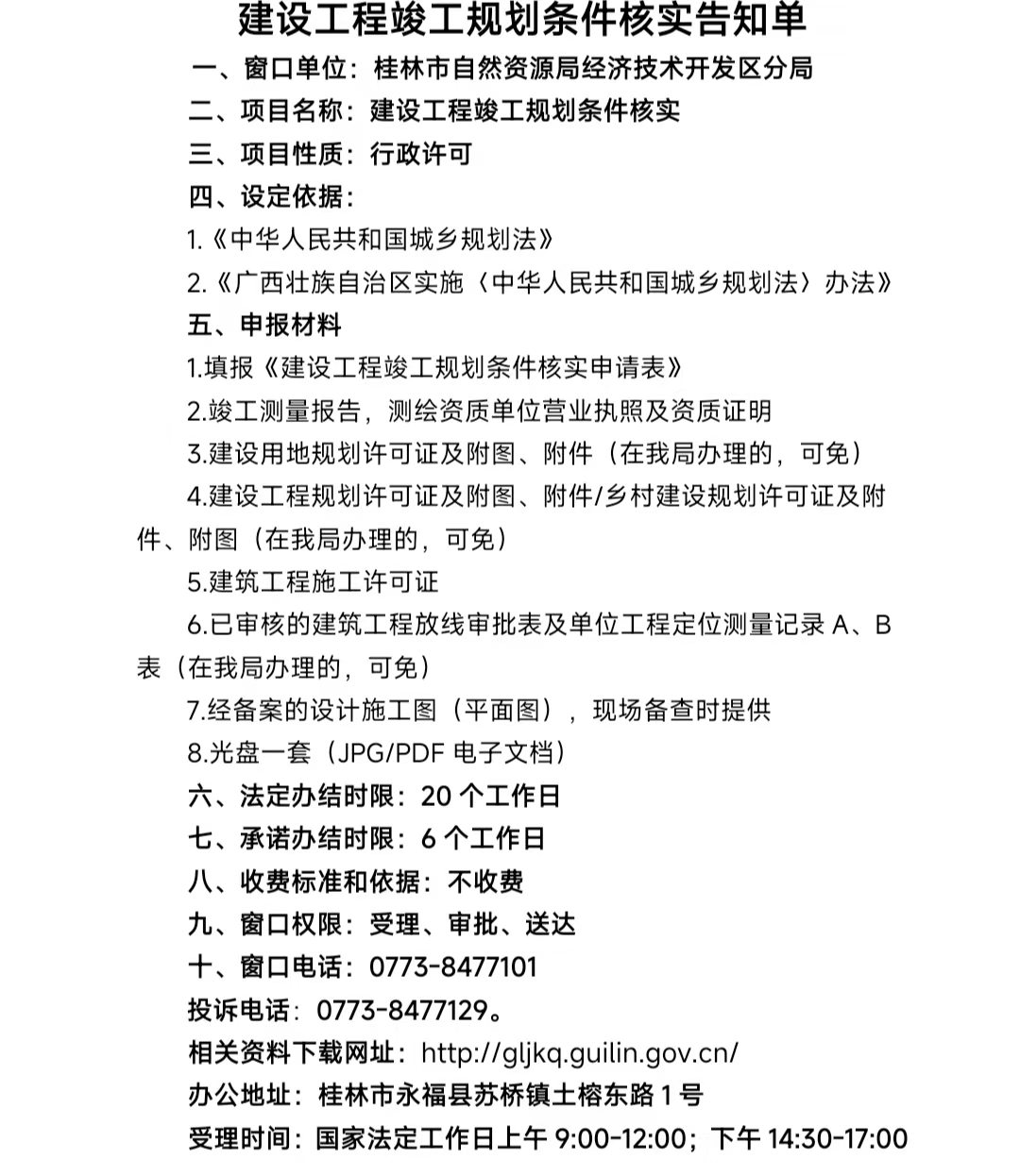 建设工程竣工规划条件核实告知单